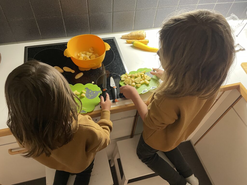 Tipp: Nutzt die Zeit vor dem Essen, um gemeinsam zu kochen. Jedes Familienmitglied kann unterschiedliche Aufgaben übernehmen. Vom Schneiden von Gemüse bis zum Rühren in Töpfen. Kinder können beim Abmessen von Zutaten helfen oder einfache, sichere Aufgaben übernehmen. Das gemeinsame Zubereiten einer Mahlzeit schafft nicht nur Vorfreude, sondern stärkt auch das Band zwischen den Familienmitgliedern.