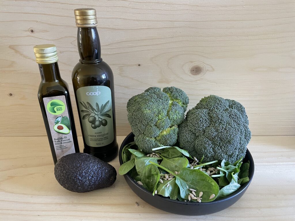 Unser kleiner Tipp: Ein paar Nüsse über den Salat streuen oder ein Löffelchen Olivenöl über’s Gemüse geben und schon habt ihr einen Vitamin-E-Boost auf dem Teller.